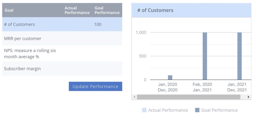 Once your team is aligned, our system will also provide you with a Dashboard of annual/quarterly/monthly goals to track your progress and ensure that you and your team are on track to achieving them.